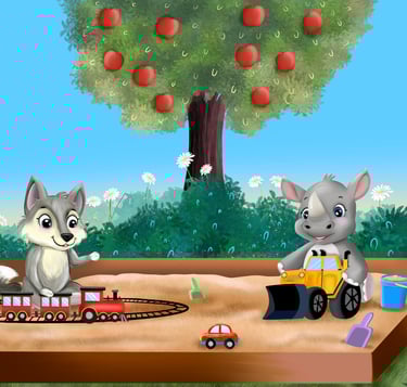 Dive into the world of imagination with Rhino and Wolf, a journey through the eyes of children who believe they can be anything. From a train chugging along to a brave superhero saving the day, this charming picture book celebrates the boundless creativity and dreams of children. Perfect for bedtime or anytime.