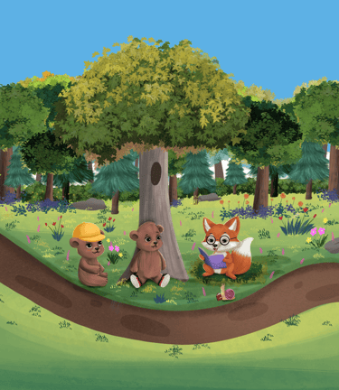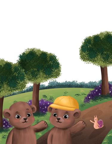 Join Grizzly and Brownie, two bear brothers, on an outdoor adventure filled with kindness, teamwork, and fun! Along the trail, they meet new animal friends, lend a helping paw, and discover the joy of friendship and play.